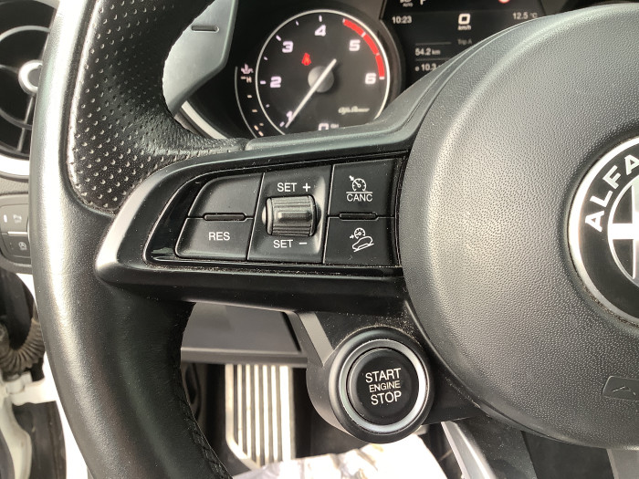 Alfa Connected Services (My Assistant, My Remote, My Car, My Navigation)Allumage automatique des feux et des essuie-glacesApple CarPlay / Android AutoBanquette AR rabattable 40/20/40Calandre noireClimatisation automatique bi-zone avec aerateur aux places ARDark-Line - contours de vitres noir laqueDouble sortie d'echappementEclairage diurne (signature lumineuse) a LEDEtriers de freins NoirsFeux antibrouillard AV a LEDFeux AR a LEDFixation siege enfant de type IsofixFrein de parking electroniqueHayon electrique a memoireInserts de planche de bord, tunnel central avant et portieres en aluminiumInstrumentation de bord 7" TFT couleurJantes alliage 19" VeloceKit de reparation pneumatiques Fix & GoOuverture des portes mains libres avec eclairage des poignees de portePack Confort : Systeme d'amelioration de la qualite de l'air, Pare-brise athermique, Eclairage des poignees de portes, Double prise USB AR, Systeme d'entree sans cles (conducteur et passager)Pack Eclairage : Lave-phares, Projecteurs AV bi-Xenon 35W auto-directionnels avec feux de jour a LED, Feux AV eclairage diurne LEDPack Hiver : Volant chauffant, Buses de lave-glaces chauffantes, Sieges AV chauffantsPack Parking : Camera de recul avec lignes indicatrices, Radar de parking AV et ARPack Performance : Suspension Active Alfa, Differentiel a glissement limite Q2, Palettes de changement des rapports au volant en aluminium brossePack Sport : Pedalier aluminium sport, Inserts de planche de bord, tunnel central avant et portieres en aluminium, Pommeau de vitesse perfore, Volant Sport en cuir, Etriers de freins JaunesPalettes au volant en aluminiumPalettes de changement des rapports au volant en aluminium brossePedalier aluminium sportPedalier en aluminiumPlaque de protection noirePommeau de vitesse perforePrise 12VPrise USB AV + 2 prises USB ARProjecteurs antibrouillard AV a LEDProjecteurs Bi-Xenon 35W auto-directionnels avec lave-pharesRadar de parking AV et ARRadio numerique (DAB) et info traficReconnaissance des panneaux de signalisationRetroviseur interieur electro-chromatiqueRetroviseurs exterieurs rabattables electriquementRotary PadSelecteur de mode de conduite Alfa DNASelecteur de vitesse sportSellerie mixte simili cuir et tissu AlfaTecSellerie mixte tissu & AlfaTec (synthetique)Seuils de portes en aluminiumSieges a reglage manuel 6 positionsSieges AV chauffantsSieges AV Luxury chauffantsSorties d'echappement NoiresStart & StopSuspension Dynamique AlfaSysteme Alfa Connect (Radio, MP3, Aux-in, Bluetooth) avec ecran panoramique 8,8" tactile,Systeme Audio 8 HPSysteme d'aide a la descente Hill Descent HolderSysteme d'aide au freinage d'urgence (AEB)Systeme d'alerte de franchissement de ligne (LDW)Systeme d'alertes anticollisions (FCW) avec detection pietonsSysteme de freins integre (IBS)Systeme Navigation 3D 8,8"Tapis de sol noirsVitres AR surteinteesVolant chauffantVolant Luxury chauffantVolant Sport en cuir