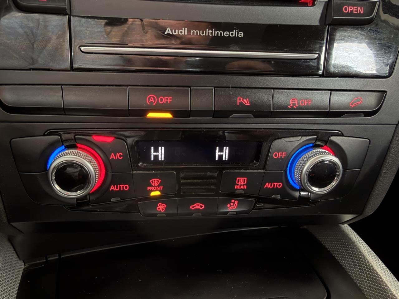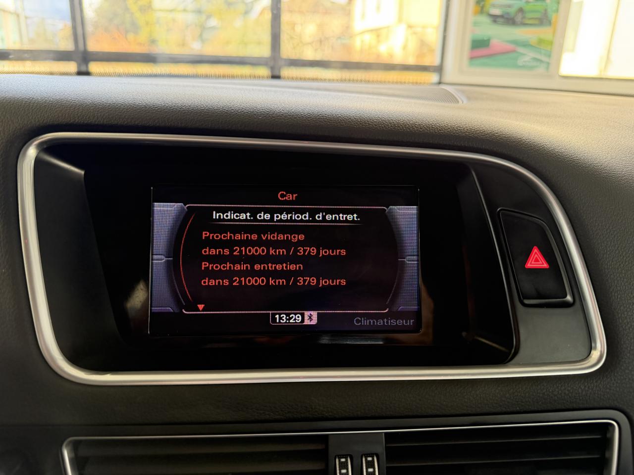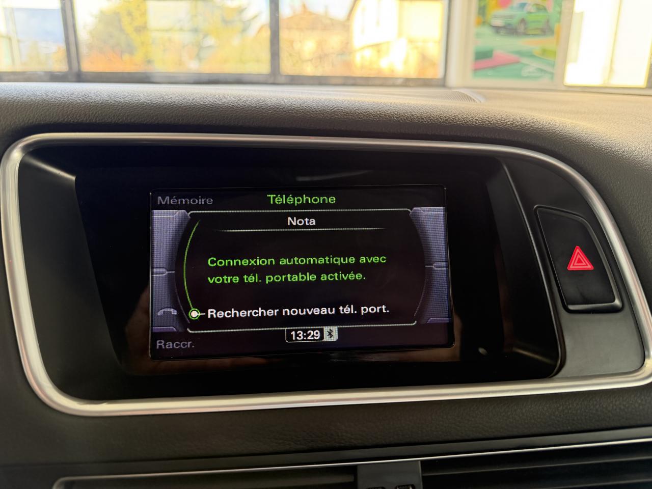 Accoudoir central à l'avant, pour conducteur et passager avant, coulissant en longueur de 65 mm, inclinaison réglable rabattable, avec vide-poches sous l'accoudoir central, incluant deux porte-boissons et prise de 12 V dans la console centraleAccoudoir central dans le dossier des sièges arrière, rabattableAirbag grand volume conducteur et le passager avant, détection de la position du siège, airbag adaptatif conducteur et passager avantAirbags latéraux (airbag thorax et bassin à l'avant)Anti-démarrage électronique intégré à la commande du moteur ; activation automatique par la clé du véhiculeAntipatinage électronique ASR : pour une bonne traction, empêche le patinage des roues motricesApplications en aluminium dimension argent sur tableau de bord, contre-portes et console centraleAppuie-têtes, réglables à l'avant et à l'arrièreAssistance au freinage d'urgenceAudi BackguardAvertisseur deux tons sur le moyeu du volantBanquette arrière rabattable 60/40, déverrouillage à distance des dossiers via un levier dans la garniture latérale du coffreBecquet de pavillonCarrosserie galvaniséeCeintures de sécurité : ceintures trois points à enrouleur pour tous les sièges, avec contrôle du port à l'avant, assorties à la couleur de l'habitacleCendrier dans la console centrale à l'avant et à l'arrière, allume-cigare à l'avantChangeur 6 CD/MP3/WMA pour GPS PlusChâssis DynamiqueCiel de pavillon en tissu : couleur gris lumière ou beige lin selon la couleur choisie pour la garniture intérieureClimatisation automatique Confort PlusColonne de direction de sécurité : complète le potentiel de protection de la ceinture de sécurité et de l'airbagConsole centrale, surélevée, avec compartiment de rangement et volet roulantContact d'allumage électronique, clé de contact mémorisant différentes données d'entretienContrôle de pression des pneus ( TPMS )Contrôle électronique de stabilisation ESC 8.1 avec détection de barres de toitDétecteur de pluie et de luminosité incluant rétroviseur intérieur jour/nuit automatiqueDéverrouillage de coffre par touche douce : déverrouillage avec assistance électriqueDirection assistée électromécanique, direction à crémaillère sans entretien avec asistance asservie à la vitesseEclairage intérieur, à temporisation avec contacteur sur toutes les portièresEcran 6,5 pouces couleur intégré au tableau de bord, pour l'affichage des fonctions de la radio, de la climatisation et des fonctions du menu du véhicule, ainsi que de l'heureEcran central avec affichage monochromeEcrous de roues antivol ; ne s'enlèvent qu'au moyen de l'adaptateur fourniEssuie-glace arrière avec déclenchement automatique en marche arrièreEssuie-glace deux vitesses : réglage d'intermittence sur 4 niveaux, commande de balayage coup par coup, lavage-balayage automatiqueÉtui à lunettes, dans le module d'éclairage intérieur avant, au-dessus du rétroviseur intérieurFeux arrière, rouges, avec feux de recul blancs, feux arrière de brouillard intégrés, avec capot de coffre ouvert : fonction feux arrière dans le bandeau d'éclairage du pare-chocsFilet de séparation, vertical, amovibleFrein de stationnement électromécanique : comprend la fonction de frein de secours sur les quatre roues durant la marcheHill Descent Control (HDC) : contrôle de descente qui permet de maintenir une vitesse stabilisée entre 9 km/h et 30 km/h. Possibilité d'activer le système jusqu'à 60 km/hIdentification du modèle à l'arrière, inscription “quattro” à l'arrière, sur la calandre et sur le tableau de bord côté passager avant ; sur demande sans identification du modèleIndicateur de rapport de vitesse dans le système d'information du conducteur : apporte assistance au conducteur dans le choix du rapport de vitesse adaptéIndication de l'usure des garnitures de frein à l'avant ; affichage sur l'écran centralInstrumentation, avec éclairage réglableInterface BluetoothJantes en aluminium coulé style 6 branches, 8 J x 17'' avec pneus 235/65 R17 104WLève-vitres électriques à l'avant et à l'arrière avec protection antipincement et fonction ouverture/fermeture Confort par impulsionLimiteurs d'effort sur les ceintures de sécurité avantLunette arrière dégivrante avec minuterieMiroir de courtoisieMoulures de seuils de portes en plastiqueOEilletons de fixation, quatre oeilletons dans le coffre pour arrimer le chargementOrdinateur de bord couleur, système de contrôle Autocheck et programme efficiencyOutillage de bord dans le coffrePack Aluminium extérieurPare-chocs, laqués dans la couleur de carrosserie, bas de pare-chocs avant et arrière ainsi que bandeaux de portières en bas, noir, matPare-soleil, rabattables et pivotants, côté conducteur et passager avantParking System Plus : signal acoustique et visuel d'aide au stationnement avant et arrière par pictogrammes sur l'écran couleur du MMIPhares antibrouillard intégrés dans le bouclier avantPoignées de maintien avec mécanisme amortisseur : quatre poignées encastrées dans le ciel de pavillonPoignées de portes couleur carrosseriePréparation pour crochet d'attelagePréparation pour siège enfant ISOFIX pour sièges latéraux arrièrePrétensionneurs des ceintures de sécurité avantProjecteurs Xénon Plus incluant lave-phares, feux de jour à LEDQuattro, transmission intégrale permanente avec répartition asymétrique et dynamique de couple, différentiel central autobloquant, blocage électronique de différentiel EDS par intervention sur les freins des roues motricesRampes de pavillon en aluminium poli incluant barres de toit transversalesRégulateur de vitesseRéservoir avec protection contre les erreurs de ravitaillementRétroviseurs extérieurs : avec clignotants à diodes intégrés, réglables et rabattable électriquement, dégivrants avec coques laquées dans la couleur de carrosserie, miroir asphérique à gaucheSellerie en tissu HavaneSièges avant avec réglage manuel d