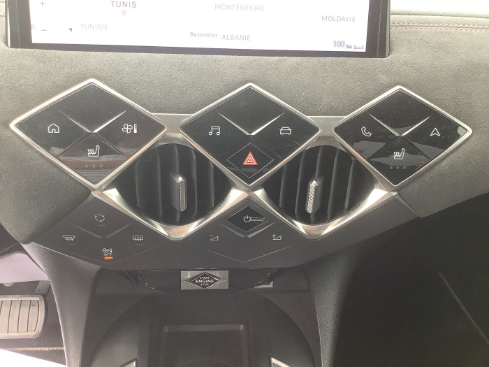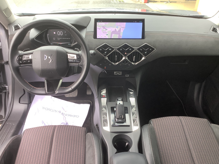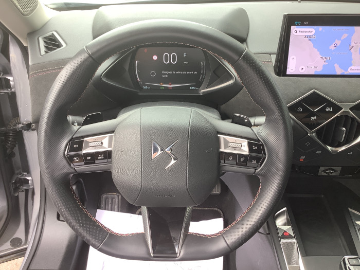 ABS avec repartiteur electronique de freinage (REF) et Aide au Freinage d'Urgence (AFU)Acces et demarrage mains libres ProximityAccoudoir central AVAide au stationnement AV/AR, 360 Vision et surveillance d'angles mortsAirbags frontaux (passager deconnectable), lateraux et rideauxAlerte active de franchissement involontaire de ligneAllumage automatique des pharesBadge de capot ETOILEBanquette AR 2/3 - 1/3Boite de vitesse automatique sequentielle 6 vitesseCentre de roue NoirChargeur sans filClimatisation automatiqueCombine numeriqueCondamnation centraliseeControle dynamique de stabilite (ESP) avec antipatinage des roues (ASR)Detection de sous-gonflageDirection assisteeDS IRIS SYSTEM avec Navigation 3D ConnecteeDS Sensorial DriveDS Wings et logo DS sur la calandre chromesEclairage d'accueil et d'accompagnementEclairage de cave a pieds a LEDEcran tactile capacitif 10,3" HD avec Android Auto et Apple Carplay sans filEnjoliveur de feux AR noir brillantEssuie-vitre AV a declenchement et cadencement automatiquesFeux AR a LEDFixations ISOFIX a la place passager AV et aux places laterales ARFrein de stationnement electrique automatiqueFreinage d'urgence automatique pilote par cameraGrille de calandre noir brillant avec pampilles chromeesInterieur Alcantara NoirJantes alliage 18" NICEJonc superieur de volet Noir brillant avec lettrage 'DS AUTOMOBILES' en acier inoxydableLecheurs de vitres invisiblesLeve-vitres AV et AR electriques et sequentielsMirror Screen sans fil via WifiMonogrammes AR chromesPack Connect PLUS pour 3 ansPalettes au volantPare-brise teinte et acoustiquePare-soleils avec miroirs de courtoisie occultables eclaires a LEDPoignees de portes affleurantesPrises 12 VPrises USBProjecteurs a LEDRadio numerique terrestre (DAB)Reconnaissance des panneaux de signalisation et preconisationRegulateur/Limiteur de vitesseRehausse manuelle de siege conducteurRehausse manuelle du siege passagerRetroviseur interieur electrochrome sans cadreRetroviseurs exterieurs avec embase et coque noir brillantRetroviseurs exterieurs electriques, degivrants et rabattables electriquementRoue de secours galetteSieges AV chauffantsSieges AV confortSOS & AssistanceSurtapis AV/ARTeinte Caisse opaque Blanc BanquiseVitres AR et lunette AR surteinteesVolant reglable en hauteur et profondeur