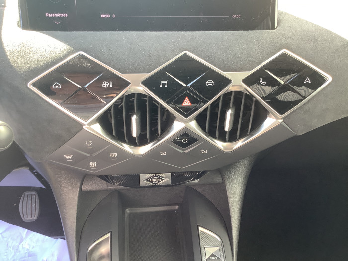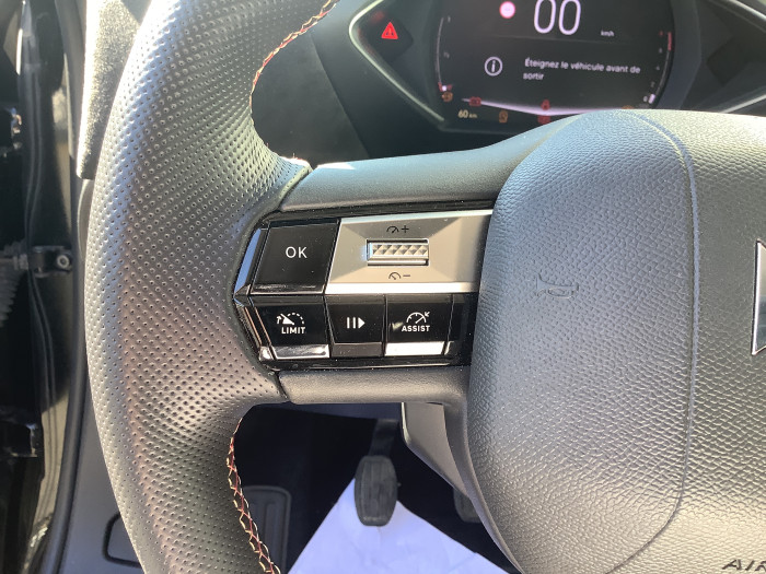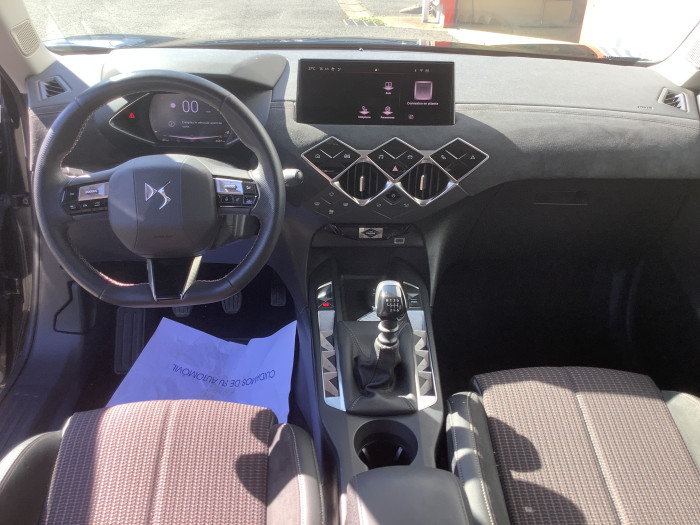 ABS avec repartiteur electronique de freinage (REF) et Aide au Freinage d'Urgence (AFU)ABS avec repartiteur electronique de freinage (REF) et Aide au Freinage d'Urgence (AFU) et ESPABS, AFU, ESP, REFAccoudoir central AVAdvanced Traction Control (Systeme de gestion de l'adherence sur tout type de route)Aide au stationnement ARAirbags frontaux (passager deconnectable), lateraux AV et AR, rideaux AV et ARAlerte active de franchissement involontaire de ligneAllumage automatique des pharesApplication MyDSBadge DS sur le capot et et Logo DS sur la calandreBanquette AR 2/3 - 1/3Centre de roue CarminClimatisation automatiqueCombine numeriqueCondamnation centraliseeControle dynamique de stabilite (ESP) avec antipatinage des roues (ASR)Demarrage mains-libresDetection de sous-gonflageDS Wings Noir BrillantEclairage d'accueil et d'accompagnementEclairage de cave a pieds a LEDEcran tactile capacitif 10,3" HDEnjoliveur de feux AR noir brillantEssuie-vitre AV a declenchement et cadencement automatiquesFeux AR halogeneFixations ISOFIX a la place passager AV et aux places laterales ARFrein de stationnement electrique automatiqueFreinage d'urgence automatique pilote par cameraGrille de calandre noir brillant avec pampilles noir brillantInterieur Alcantara Noir : Ciel de pavillon Gris Galet, Decor Alcantara Noir, Volant Cuir fleur perfore et coutures Or et Carmin, Siege Tissu Tresse Basalte avec AlcantaraInterieur Tissu tresse Basalte avec Alcantara : Siege Tissu Tresse Basalte avec Alcantara, Ciel de pavillon Gris Galet, Decor Alcantara Noir, Planche de bord Alcantara Noir, Volant Cuir fleur perfore et coutures Or et CarminJantes alliage 17" DUBLINJonc superieur de volet Noir brillant avec lettrage 'DS AUTOMOBILES' en acier inoxydableKit de depannage provisoire de pneumatiquesLecheurs de vitres invisiblesLeve-vitres AV et AR electriques et sequentielsLogo DS de calandre noir mat textureLunette AR degivranteMirror Screen sans fil via WifiMonogrammes AR noir brillantPack connect plusPack dequipements pour la SecuritePare-brise teinte et acoustiquePare-soleils avec miroirs de courtoisie occultables eclaires a LEDPoignees de portes affleurantesPompe a chaleurPredisposition usine pour roue de secours accessoirePrise USB dans l'accoudoir centralPrise USB Data a l'AVPrises 12 VProjecteurs a LEDRadio numerique terrestre (DAB)Reconnaissance des panneaux de signalisation et preconisationRegulateur/Limiteur de vitesseRehausse manuelle de siege conducteurRehausse manuelle du siege passagerRetroviseur interieur electrochrome sans cadreRetroviseurs exterieurs avec embase et coque noir brillantRetroviseurs exterieurs electriques, degivrants et rabattables electriquementServices Pack Navigation PlusSieges AV confortSOS & AssistanceTeinte Caisse opaque Blanc BanquiseVitres AR et lunette AR surteinteesVolant reglable en hauteur et profondeur